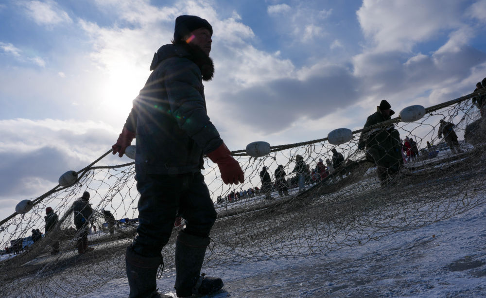 2021年12月26日,游客在查干湖冰面上观看冬捕。近年来,查干湖在保护生态环境的基础上,推动冬捕的可持续发展,通过科学规划捕捞量、加强渔业资源管理等措施,确保查干湖渔业资源的稳定增长。