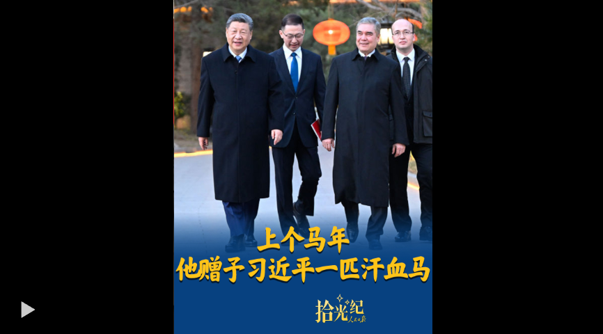 3月18日,国家主席习近平会见土库曼斯坦民族领袖、人民委员会主席别尔德穆哈梅多夫。2014年,别尔德穆哈梅多夫曾赠予中方一匹汗血马。“推动中土关系像汗血宝马一样马不停蹄、一马当先”,一起回顾中土的“骏马外交”。
