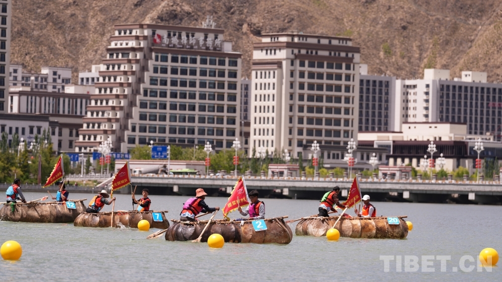 图为牛皮船比赛现场 摄影:德吉卓玛