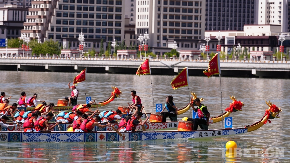 中国西藏网讯 端午佳节,粽叶飘香,龙舟竞渡的热潮在西藏拉萨澎湃涌起。5月31日,以“铸牢中华民族共同体意识 弘扬中华民族传统体育文化”为主题的2025年西藏自治区端午节牛皮船(龙舟)赛暨6月全民禁毒宣传月启动仪式,在拉萨市金珠东路滨河公园水域举行,比赛恰逢端午假期,吸引了25000余市民和游客前来观赛,热情地为参赛队伍呐喊助威。