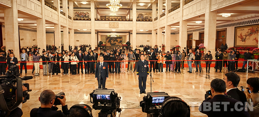 中国西藏网讯 3月9日,第十四届全国人民代表大会第四次会议第二场“代表通道”集中采访活动在人民大会堂举行,邀请6名全国人大代表接受采访。(中国西藏网 记者/刘莉 边子捷 摄影报道)