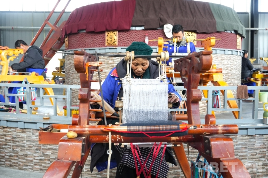 资料图:西藏山南市乃东区民族哗叽手工编织专业合作社的厂房中,员工正在编织 摄影:张艺彤