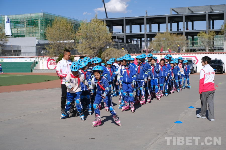 图为西藏拉萨小学生享受轮滑快乐 摄影:旦曲