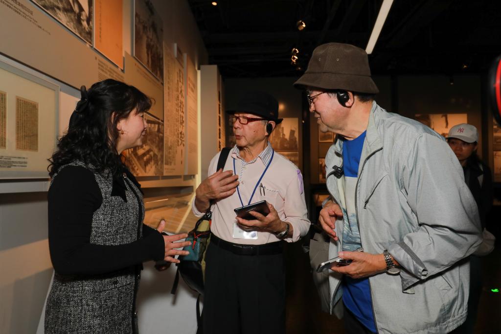 ↑2025年3月26日,夏淑琴的外孙女夏媛(左一)在侵华日军南京大屠杀遇难同胞纪念馆给日本“紫金草合唱团”成员讲解。新华社发