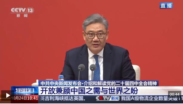 中共中央今天(24日)上午举行新闻发布会,介绍和解读党的二十届四中全会精神。