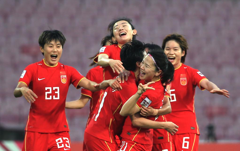 ↑2022年2月6日,在印度孟买举行的2022女足亚洲杯决赛中,中国队以3:2战胜韩国队,夺得冠军。新华社发(贾韦德·达尔摄)