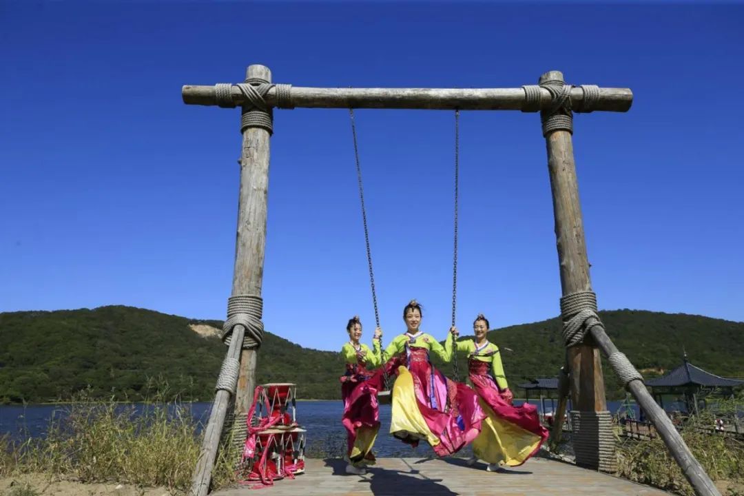 地处中国、俄罗斯、朝鲜三国交界的吉林省延边朝鲜族自治州珲春市,是一座国际范儿十足的城市,每年都吸引大量中外游客观光。来到珲春,敬信镇防川村是不容错过的一站,这里一年四季都有游客身着朝鲜族服饰拍摄写真。夜幕降临,大家围着篝火载歌载舞,一时间“笑语传三邦”。