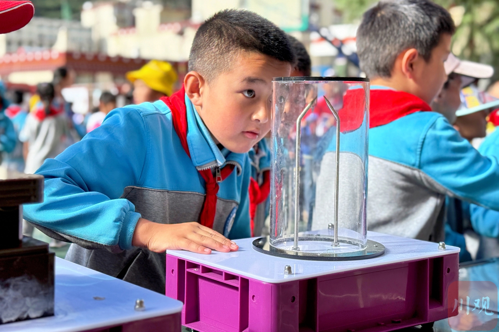 “科技志愿者”带领小学生进行科学实验。