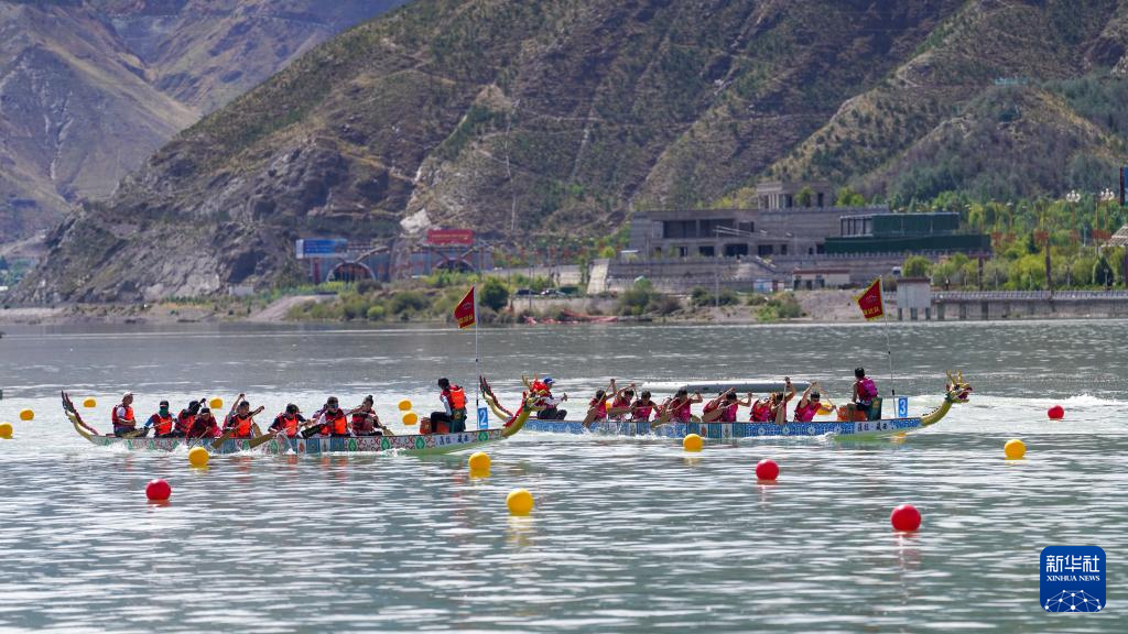 5月31日,参赛队伍在龙舟比赛中。新华社记者 晋美多吉 摄
