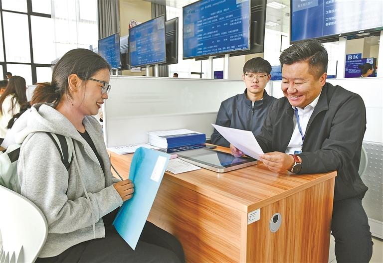 图为自治区就业服务中心举办的2025年全民数字素养与技能提升专场招聘会上,求职者在面试。记者 旦增兰泽 摄