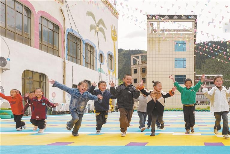 图为昌都市类乌齐县重庆双语幼儿园的孩子们在课间快乐地玩耍。记者 丹增群培 摄 (资料图片)