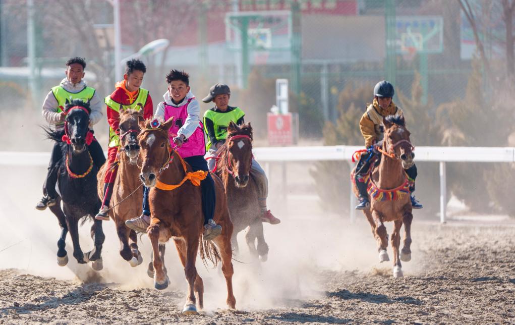2月20日,选手们在民族赛马2000米比赛中。新华社记者 丁增尼达 摄
