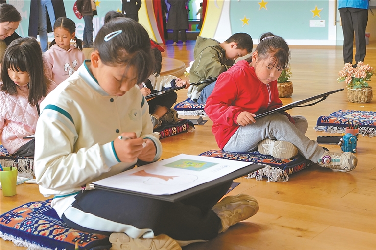 市民在西藏博物馆参与文创画作活动。记者 次仁平措 摄