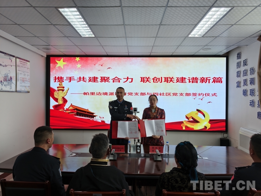 图为帕里边境派出所党支部与四社区党支部签订联创联建书