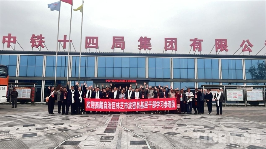图为西藏基层干部学习参观团与中铁十四局相关人员合影 摄影:王茜