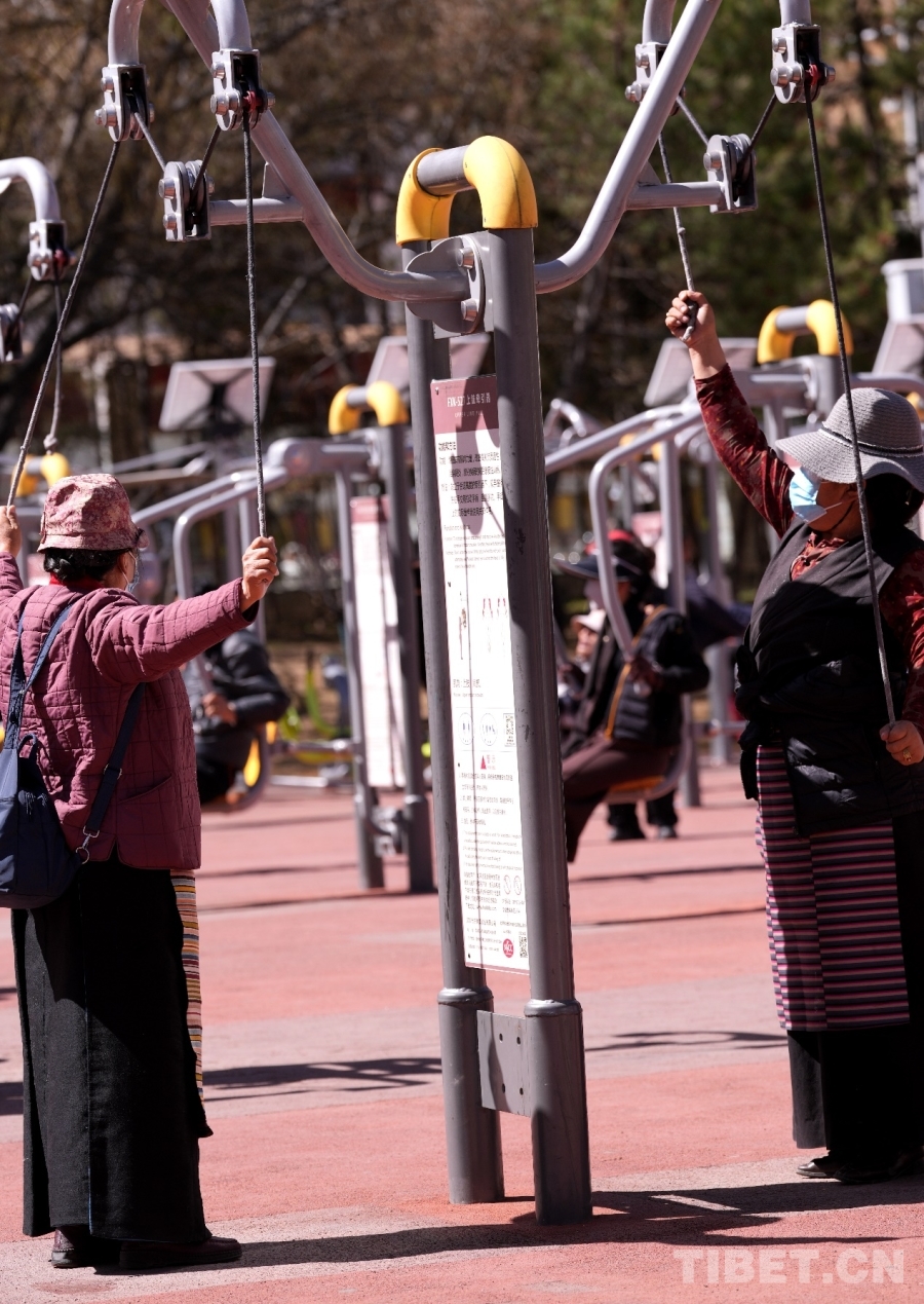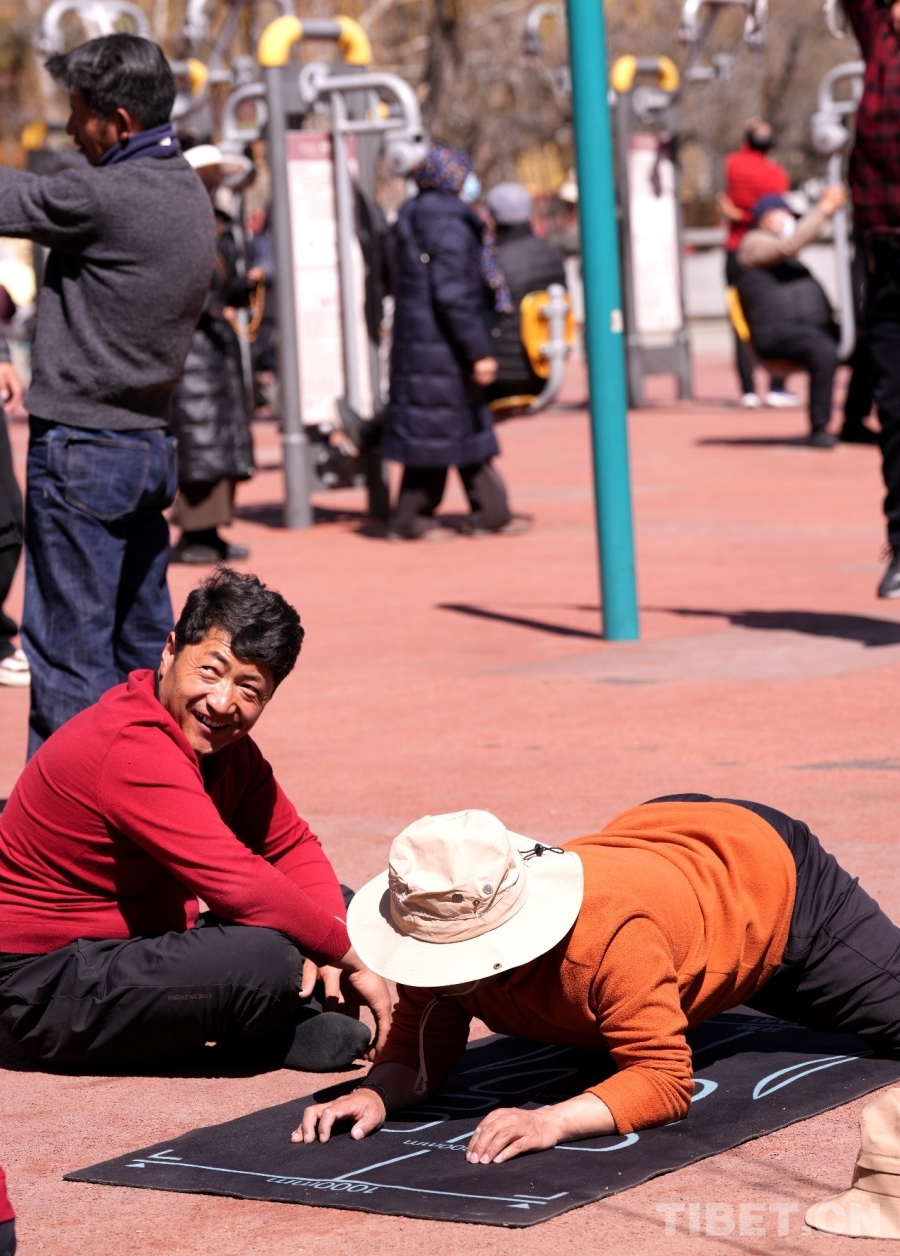3月18日,在宗角禄康公园的健身区域内,西藏市民正积极锻炼,享受着运动带来的快乐。