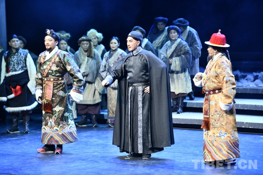 中国西藏网讯 4月2日、3日,由西藏自治区藏剧团与广东粤剧院历时近两年、首度联袂打造的原创大型史诗剧《驻藏·张大人》,连续两日在西藏自治区藏剧团藏戏艺术中心演出。全剧时长130分钟,以清末广东籍驻藏帮办大臣张荫棠治藏历程真实历史为蓝本,讲述了在英军入侵西藏的危局之下,张荫棠自请入藏,以“吾当做吾当做之事”“吾当承吾当承之责”“吾当尽吾当尽之心”的誓言与担当,守护国家主权、推动边疆发展的故事。(中国西藏网 记者/赵振宇)