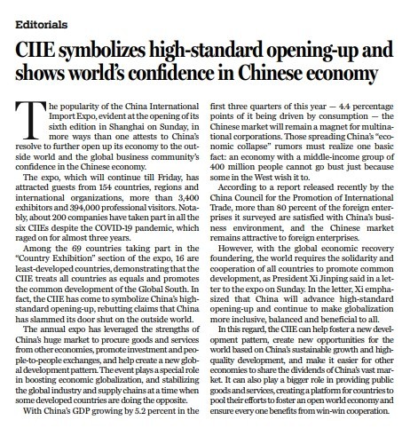 原标题:CIIE symbolizes high-standard opening-up and shows world’s confidence in Chinese economy