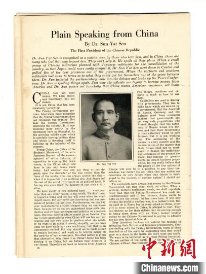 孙中山《中国人之直言》。广州孙中山大元帅府纪念馆 供图