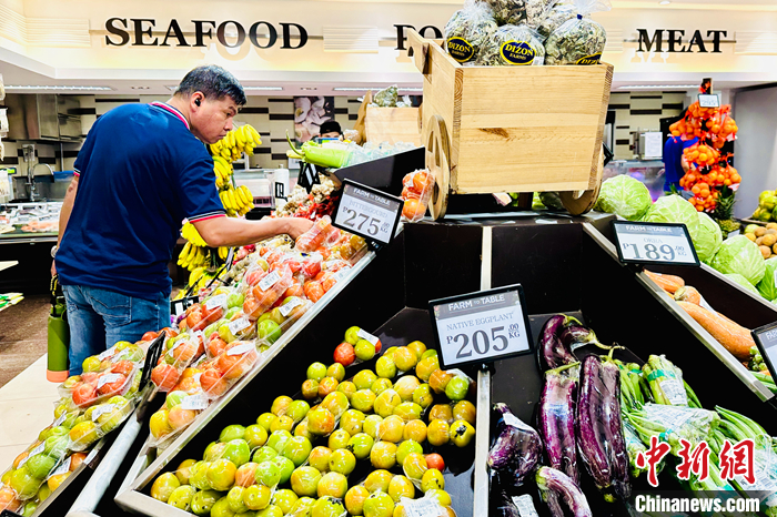 当地时间8月4日,菲律宾大马尼拉地区马卡蒂市,市民在超市选购水果。 中新社记者 张兴龙 摄