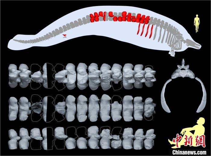 论文通讯作者、德国斯图加特州立自然博物馆Eli Amson和合作者描述了一个新龙王鲸科(basilosaurid whale)物种,估计骨骼重量超过任何已知的哺乳动物或海洋生物。他们将这一物种命名为P. colossus,并根据部分骨骼为这个动物建立了模型,这些骨骼包括13块脊椎、4块肋骨和1块髋骨,发现于秘鲁南部,估计有3900万年历史。
