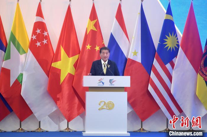 9月17日,第20届中国—东盟博览会和中国—东盟商务与投资峰会在广西南宁开幕,泰国副总理兼商业部长普坦在开幕大会上发表致辞。 中新社记者 俞靖 摄