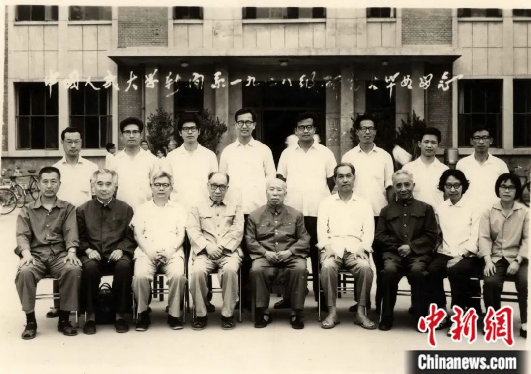 1981年,中国人民大学新闻系1978级研究生毕业留念。前排左三为方汉奇。中国人民大学新闻学院供图