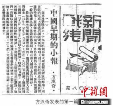 方汉奇发表的第一篇论文《中国早期的小报》。中国人民大学新闻学院 供图