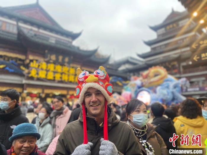 1月21日,2024豫园灯会正式亮灯,一名西班牙小伙儿在现场观灯。中新网记者 郑莹莹 摄