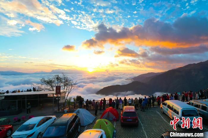图为秋季游客观赏云南哀牢山云海日出景观。刀雪锋 摄