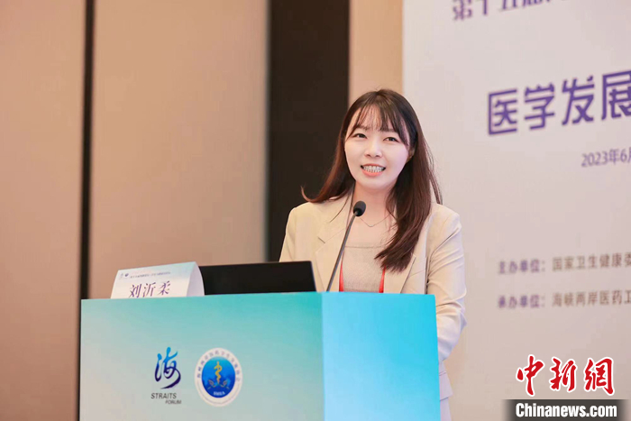 图为刘沂柔在第十五届海峡论坛“卫生与健康分论坛”发言。 中新社发 受访者供图