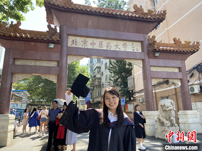 图为刘沂柔在北京中医药大学校门前留影。 中新社发 受访者供图