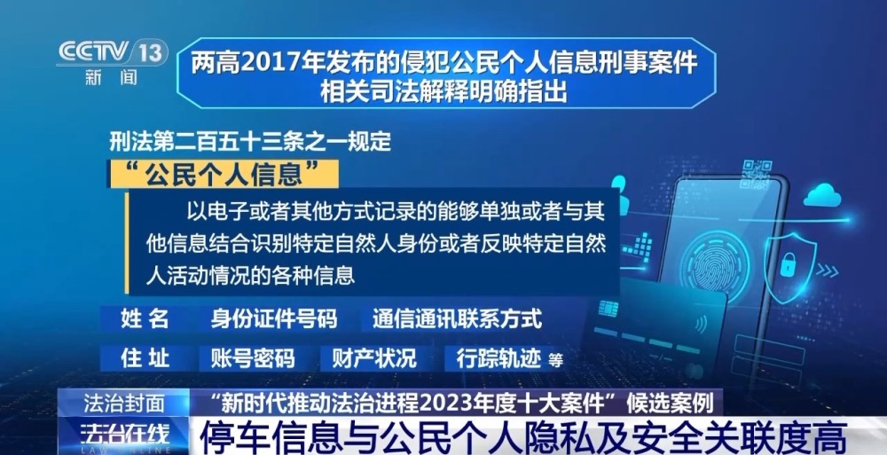 南京市鼓楼区人民法院刑庭庭长 朱锡平:往往公民个人的行动的轨迹,或者与之相关联的车辆的停车信息等,都和公民的隐私、公民的私人活动关联度非常高,这一类信息往往也涉及到公民个人的安全和行动的自由。这一类也是属于识别性很强的信息,属于公民个人信息,也是法律所保护的法意。