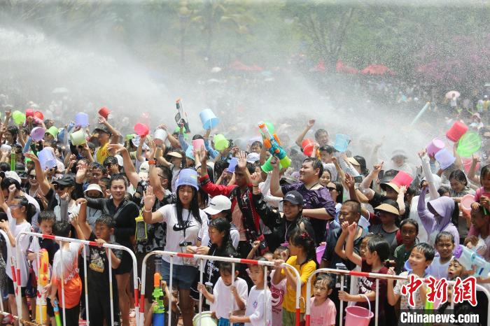 图为2024年5月1日,参加普洱市孟连傣族拉祜族佤族自治县电音泼水狂欢Party的民众及游客尽情歌舞。黄兴鸿 摄