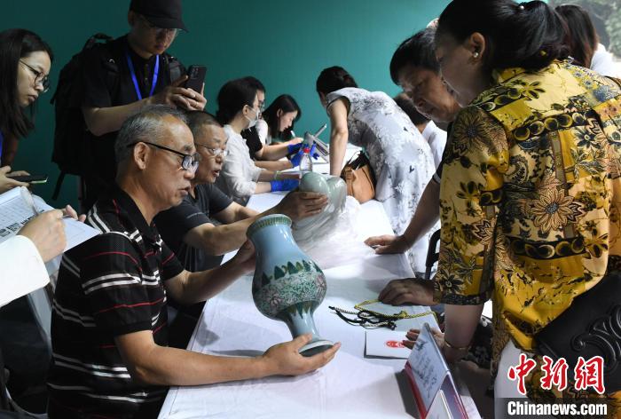 图为活动现场,专家为市民鉴定陶瓷器。中新网记者 周毅 摄