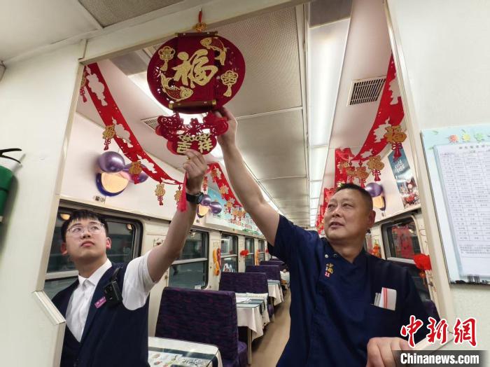 列车员在装饰车厢 哈铁供图