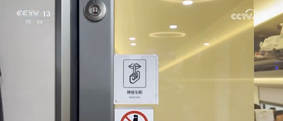 静音车厢有明显的标志,在这里车载视频系统默认静音,餐品小车在进入“静音车厢”后将停止产品介绍,工作人员服务也都是小声。