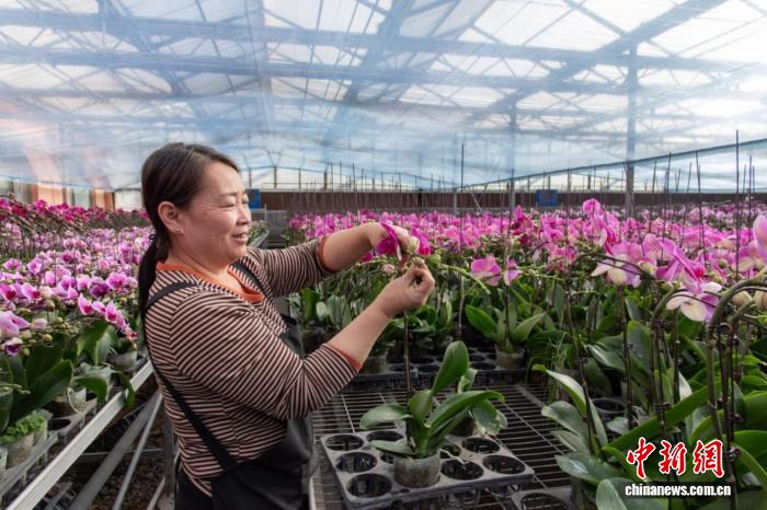 蝴蝶兰温室里,智能系统正自动调节温湿度与光照。负责人史东阳在花丛间穿梭,仔细查看每一株的长势。“这批花主要供应春节市场,必须确保品相完美。”他介绍,从2009年开始,村里通过与企业合作,陆续建成5座总面积约2万平方米的现代化温室,逐步形成从组培育苗到成花销售的完整产业链。