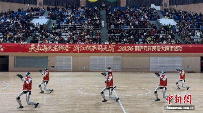2026浙江桐庐元宵民俗大踩街活动现场的机器人秧歌队。郭其钰 摄