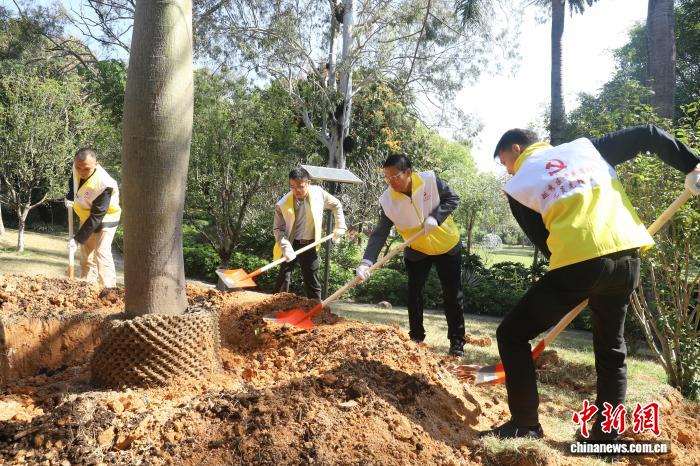 广州麓湖公园聚芳园开展植树护绿主题党日活动。广州市林业和园林局 供图