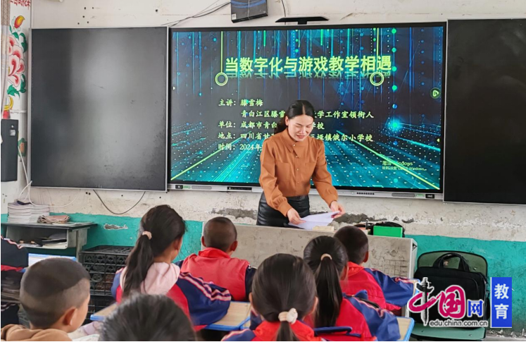 滕雪梅带来了一场专题讲座《数字化与游戏教学相遇》。讲座中,滕雪梅邀请俄尔小学的数学老师和四年级的学生参加了基于网络画板的数学教学游戏,让教师和学生深度感受教育数字化赋能教学效率的提升。“授之以鱼不如授之以渔”,滕雪梅将网络画板推荐给了俄尔小学的数学老师,并培训他们如何寻找资源、使用资源、分享资源等。本次讲座得到了帮扶学校领导、老师和学生的高度认可。