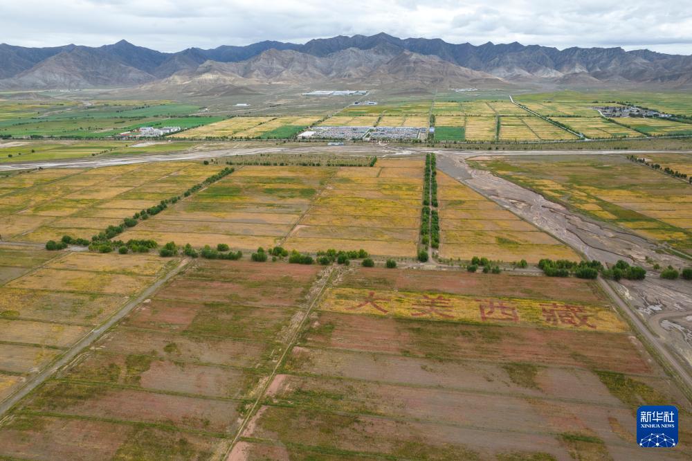这是在西藏日喀则市萨迦县扯休乡拍摄的高原藜麦种植基地(无人机照片,9月4日摄)。新华社记者 孙瑞博 摄