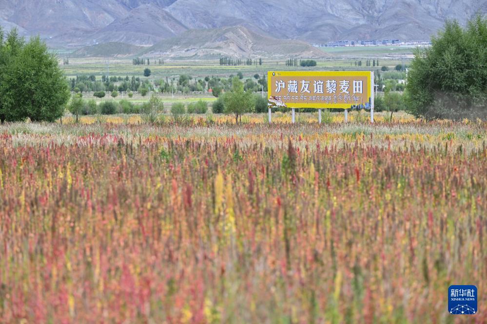 这是在西藏日喀则市萨迦县扯休乡拍摄的高原藜麦种植基地内的藜麦田(9月4日摄)。新华社记者 孙瑞博 摄