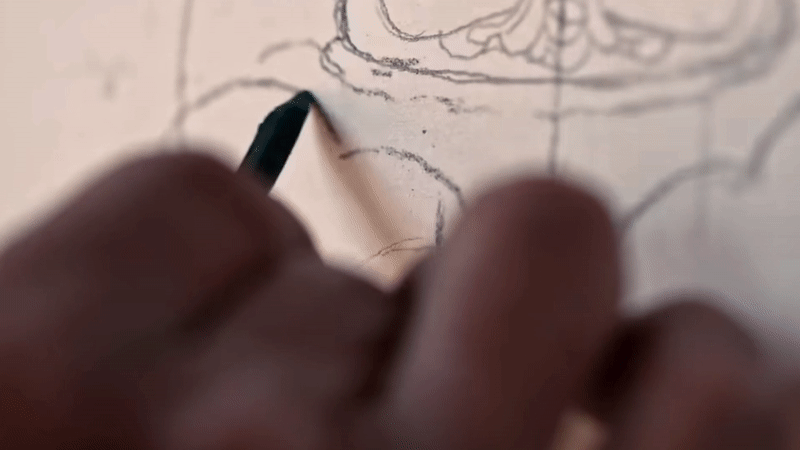 才仁桑珠为一幅唐卡漆画巨作起草线稿。新华社记者魏冠宇 摄