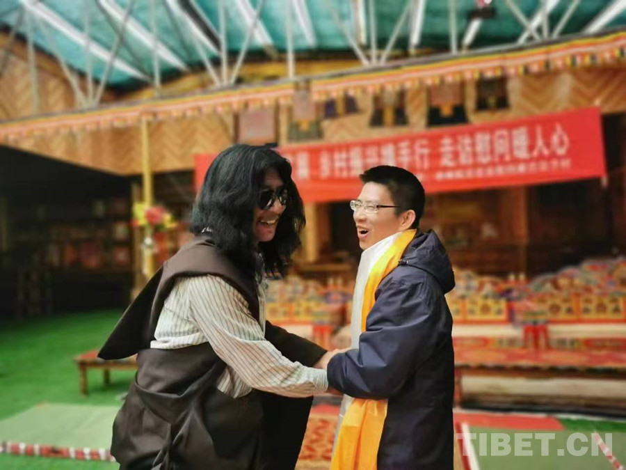 图为邱镇江与当地藏族村干部幸福相拥 受访者供图