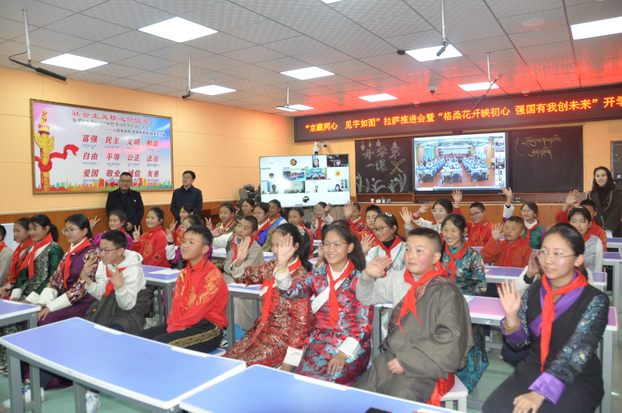 据悉,本次开学第一课依托“京藏同心 见字如面”拉萨推进会展开,京藏两地把开学典礼作为一种重要的思想政治教育课程,紧紧围绕“格桑花开映初心 强国有我创未来”的主题,深入挖掘在2025年西藏自治区定日县抗震救灾中涌现的先进事迹。