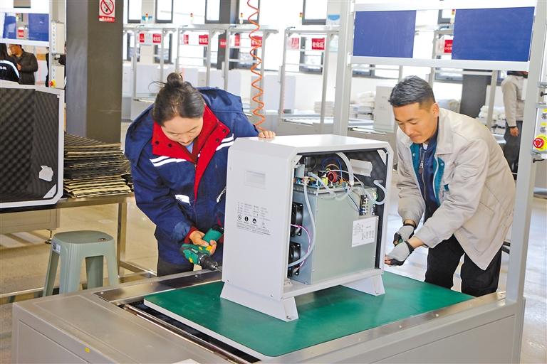 湖北援藏企业西藏清匠电器科技有限公司的工人正在组装制氧机。