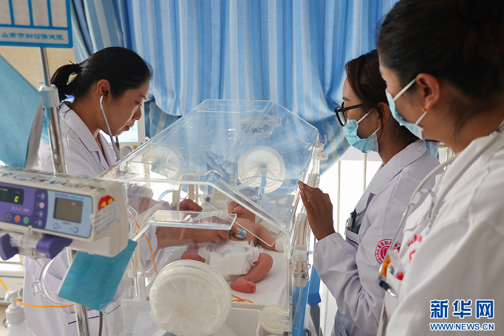 图为湖北省援藏医护人员在山南市妇幼保健院为新生儿做检查。新华网 连迅 摄
