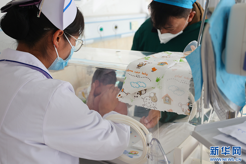 图为湖北省援藏医护人员在山南市妇幼保健院为新生儿做护理。新华网 连迅 摄