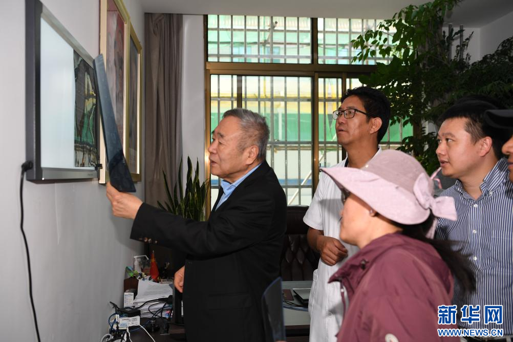 赵继宗院士(左一)查看患者的CT片(8月10日摄)。新华社记者 张汝锋 摄